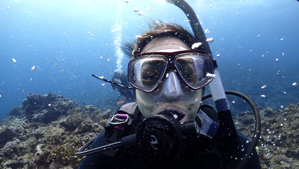 水温は25℃と少しひんやりですが、水中はテンションMAX! 冬の石垣ダイビングは少人数&じっくり潜れる最高のシーズンです。