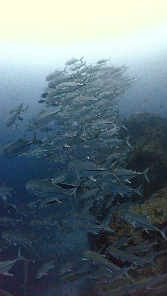 石垣島ダイビング 野原曽根で群れるギンガメアジとイソマグロ
