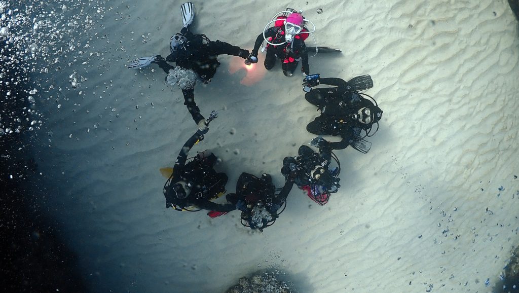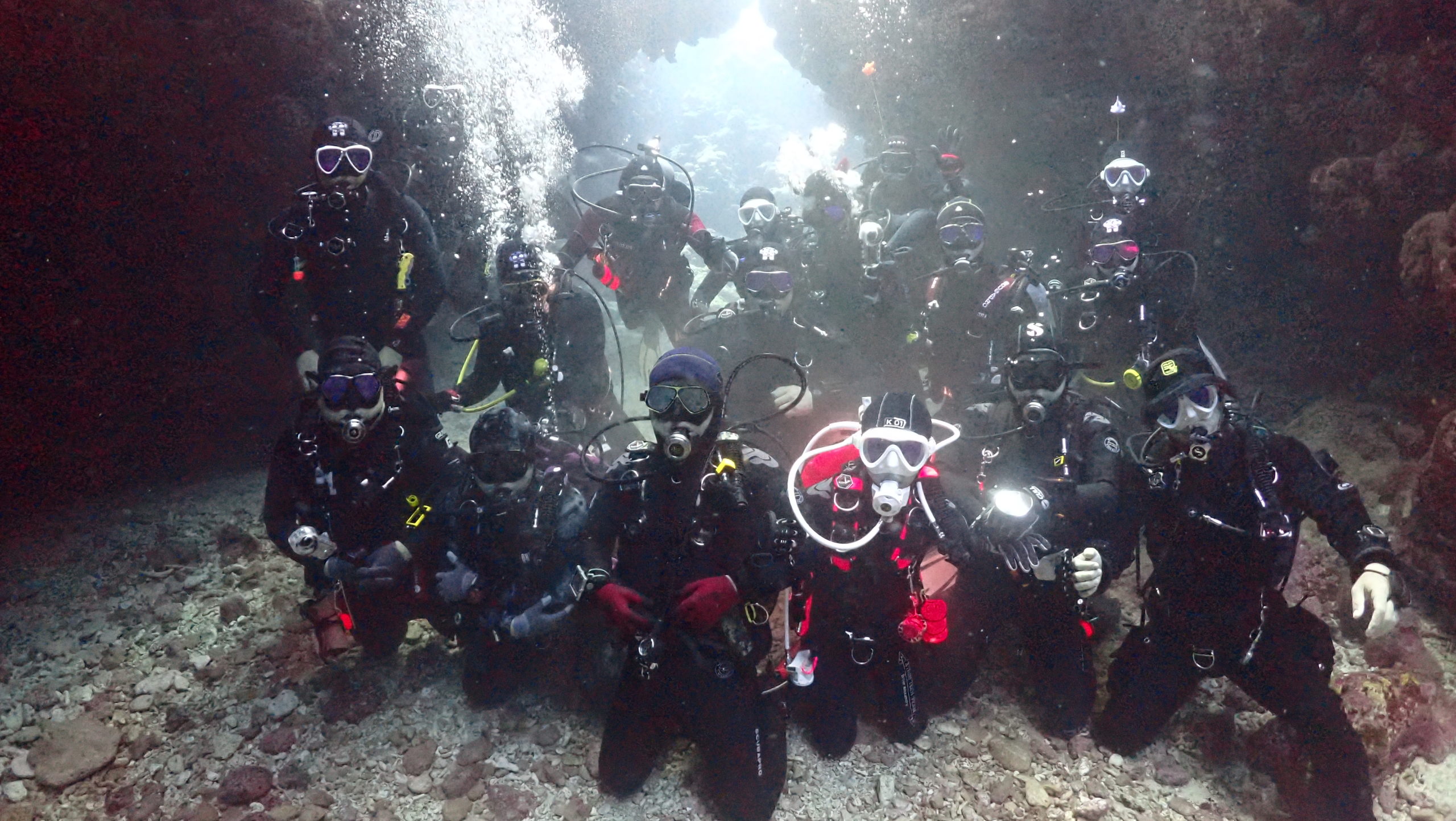 エンジェルケーブの地形ダイビングでは、光と地形の美しさに全員が感動。
