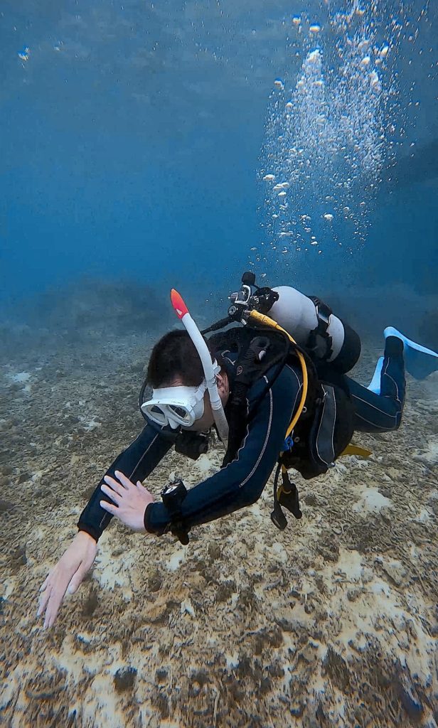 不安を抱えつつのエントリーでしたが、水中では落ち着いてスキルを消化。これまで練習してきた内容を一つひとつ丁寧に確認し、問題なくクリアすることができました。そして無事に講習修了。緊張から解放された瞬間の表情は、とても印象的でした。