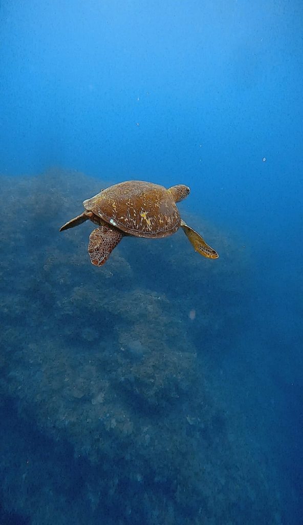 大きめのウミガメが、ゆったりと優雅に泳いでいるではありませんか。