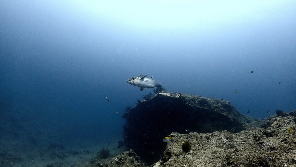 すると、大きなイソマグロがクリーニング中。迫力は十分ですが、マンタの姿は見当たらず…。いつもより静かな、どこか平和な屋良部コーナーでした。
